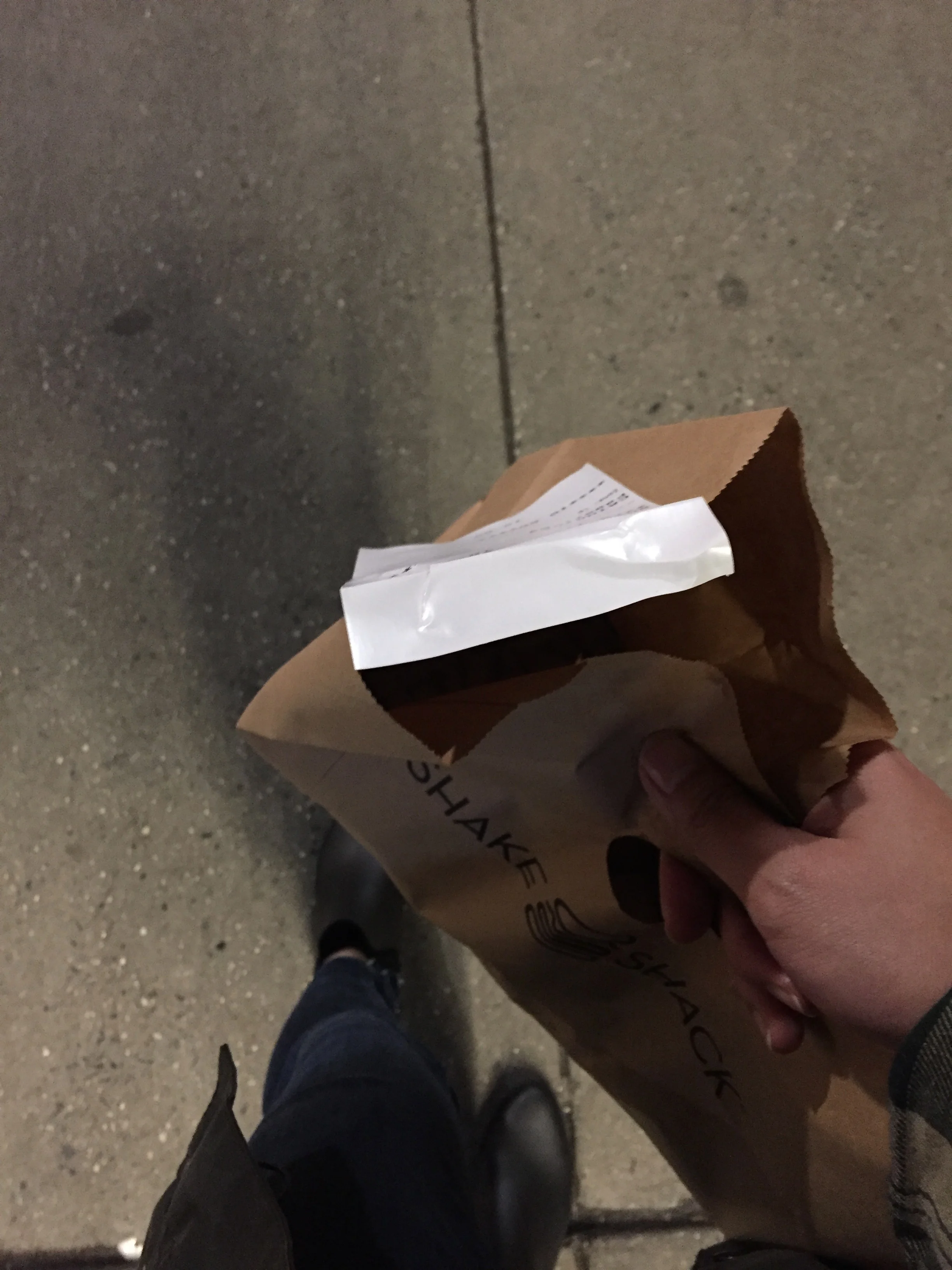 Shake Shack at 10:08pm (a very late dinner for me). A shack burger and fries make it all better :)