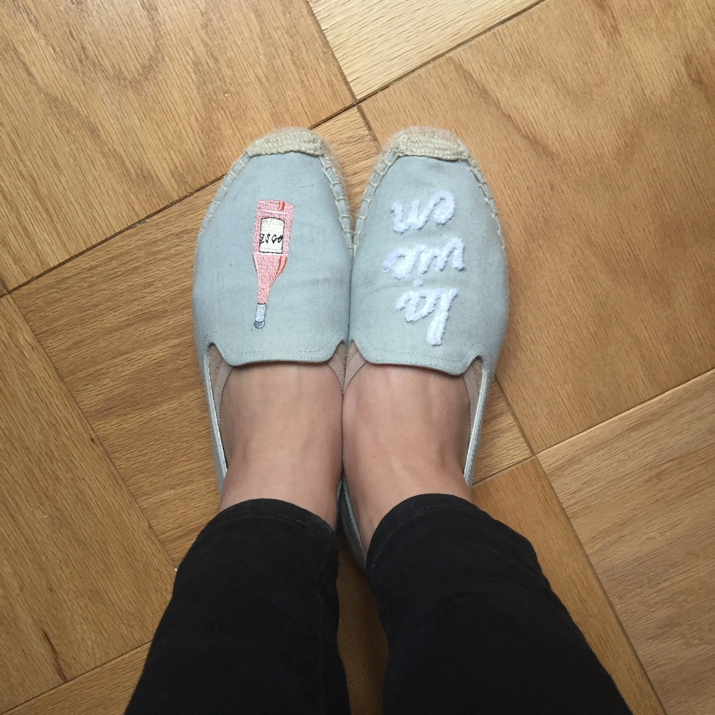Here are the low-cut socks in the same Soludos. They peek out less and are, thus, more true “no-show” socks.