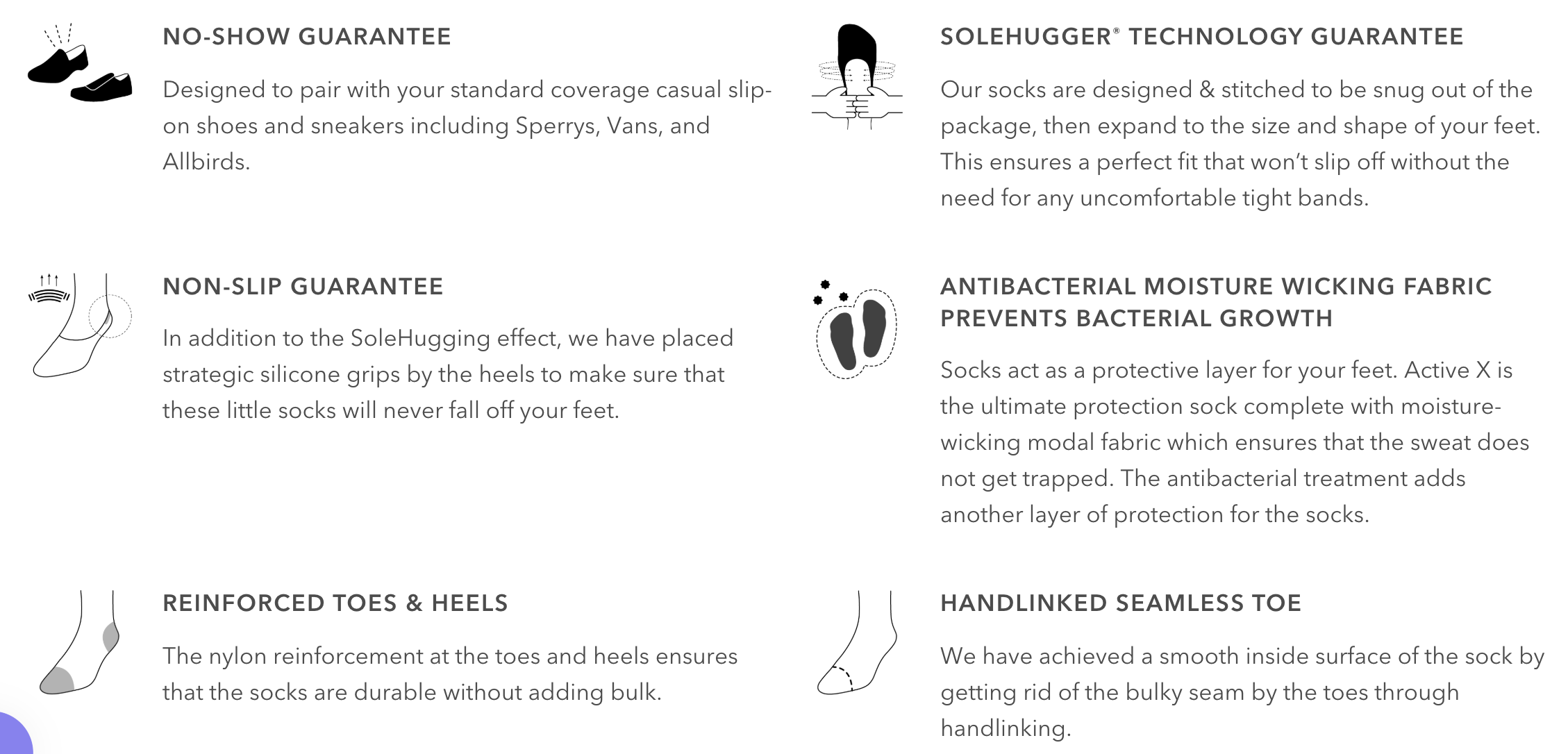 In the section below, I will be sharing some basic information about four lines: 1) SoleHugger Secret 2.0 liner socks, 2) SockShion ball-of-foot sock cushions, 3) SlingBack toe-cover socks, and 4) SoleHugger ActiveX no-show socks. Subsequently, I will provide an in-depth review of two of the four sock lines—ActiveX and SoleHugger. Since at the time of writing this, it is cold and dry in New York City, I will only skim the surface of the SlingBack line, but may return in the spring to write a more thorough review, if there is interest.