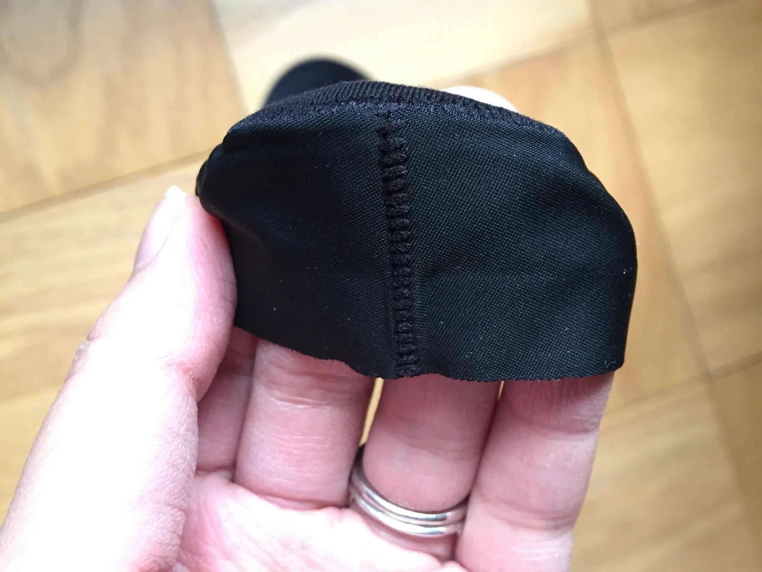 I have been quite pleased by the quality of the Sheec socks, particularly the liner socks and the ActiveX no-show socks, which I have been wearing on a regular basis. Although the care instructions state to air dry the socks, I figured I would try tossing them in the washer and dryer and see what happens. All the socks shrank ever so slightly; I felt the ActiveX socks (made of modal material) shrunk more, and I base this entirely on the empirical results of two trials for two separate pairs of socks. The socks fit snugly but became slightly looser with additional wear. My beige ActiveX socks did pick up some fuzz and pill a bit while in the dryer (as seen in the photos below). The silicone “grips” inside the heel area of the socks remained intact, however, as did the black text. Furthermore, the material did feel rougher than before, and this is expected for anything that goes in the dryer (especially under high heat). The washer and dryer units we have in our apartment building are of the industrial kind, with few temperature settings so my socks likely took a beating. I do plan to hand wash the socks in the future.