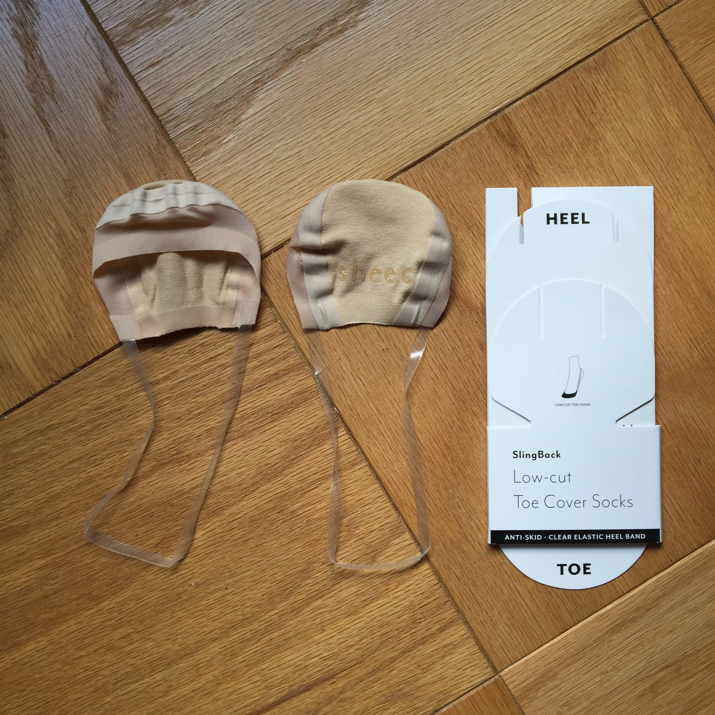Once again, I’m showing that these toe-cover socks are not no-show for all slingback styles.